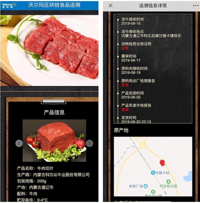 区块链可追溯渠道,第一批已有 23 种产品完结测验进入渠道,本年下半年还将连续上线超越一百种产品,掩盖包装鲜肉、蔬菜、海鲜和自有品牌等十余个品类。顾客经过扫描产品上的二维码,能够了解到产品供给源头及沃尔玛接纳的地理位置信息、物流进程时刻、产品检测陈述等详细信息。食物追溯信息数字化能够满意国内顾客对食物安全越来越高的要求。沃尔玛计划到 2020 年末前,全体可追溯鲜肉将占到全体包装鲜肉销售额的 50%,可追溯蔬菜将占到全体包装蔬菜销售额的 40%,可追溯海鲜将占到全体海鲜品类销售额的 12.5%。
