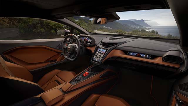 Huracan 的继任者抛弃了天然吸气式 V10 发动机,转而选用全新的 4.0 升双涡轮增压 V8 发动机和三个电动机,总功率输出为 908 马力。这款双涡轮增压 V8 发动机在圣阿加塔·波洛涅塞从头开始规划和开发,是第一款也是仅有一款可以到达 10,000 rpm 的量产超级跑车发动机。其功能肯定令人惊叹:最高速度逾越 340 公里/小时(210+ 英里/小时),仅需 2.7 秒即可从 0 加快到 100 公里/小时(0-62 英里/小时)。